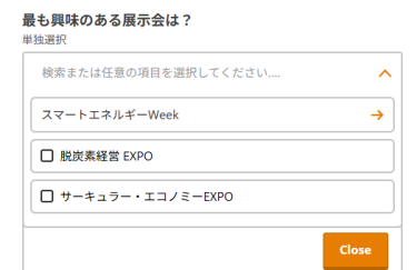 H2 & FC EXPO、PV EXPO、BATTERY JAPAN、SMART GRID EXPO、WIND EXPO、CCUS EXPO、FUSION POWER WORLDご希望の場合は、「スマートエネルギーWeek」をすると選択肢が表示されます。