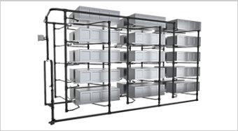 説明:バッテリーエネルギー貯蔵システム用の冷却配管。電動車用のバッテリー冷却配管実績を生かし、バッテリー周りの狭くて複雑なスペースに対し小型コネクタを使用し、バッテリー冷却液を省スペースで効率よく充分に分流させる配管モジュール設計を提案、製造いたします。
