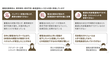 ENESは、お客様がお持ちの蓄電池、太陽光発電などのエネルギーリソースをAIがリアルタイムで監視・分析し、最適に充放電制御を行うシステムやサービスの総称です。これにより、「電気料金の削減」「電力市場での収益獲得(売電・調整力供出)」「災害時のBCP対策」といった複数の目的を、お客様の状況に合わせて同時に達成します。