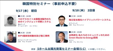 事前申込不要ですので、直接5ホール太陽光発電セミナー会場(5-C)にお越しください。