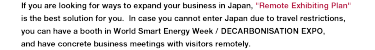 Renewable energies are expected to play a more significant role in achieving carbon neutrality by 2050. Smart Energy Week gathers a full range of renewable energy technologies such as hydrogen and fuel cells, solar power, rechargeable batteries, smart grids, wind power, biomass, zero-emission thermal power generation, etc. Smart Energy Week is an exhibition where the latest technologies, information, and people gather to accelerate business in the energy industry.