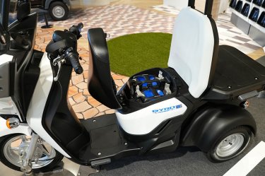 『GYRO e:』はモバイルパワーパックを動力源とする電動二輪車
