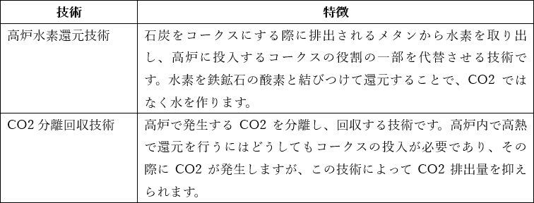 COURSE50とは、高炉法によって排出されるCO2の量を抑えることで低炭素化を図るものです。COURSE50は、以下の2つの技術で構成されます。