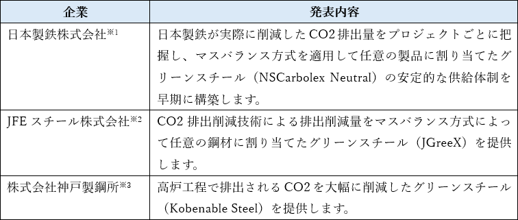 グリーンスチールの供給を発表している日本の企業・鉄鋼メーカー