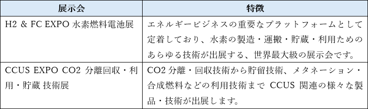 ※「H2 & FC EXPO 水素燃料電池展」「CCUS EXPO CO2分離回収・利用・貯蔵 技術展」は、「スマートエネルギーWeek(SMART ENERGY WEEK)」の構成展です。