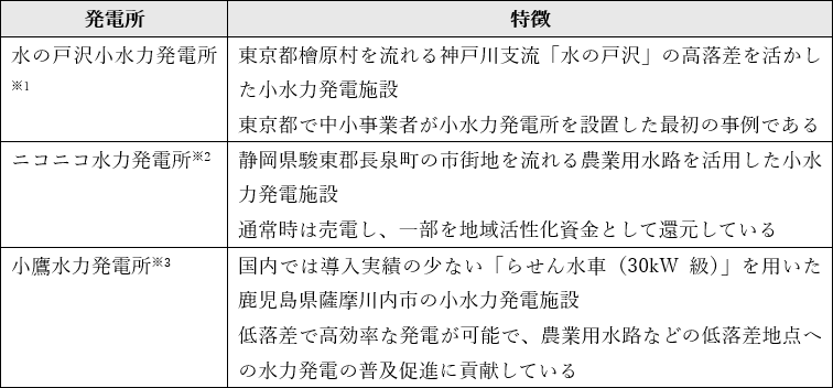 ※2出典:京葉ガスエナジーソリューション株式会社「ニコニコ水力発電所(ニコニコ水力1号・2号・3号)」