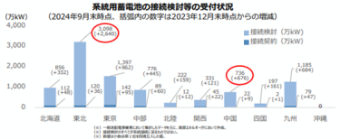 2023年12月末時点と比較すると、特に東北地方と中国地方で大幅な伸びを示しており、九州地方を含め、太陽光発電や風力発電など再生可能エネルギーの導入が進む地域で、系統用蓄電池の導入が加速しています。