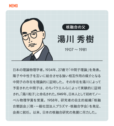 核融合の研究はアメリカ、ソ連、欧州などで秘密裏に進められてきました。日本でもノーベル物理学賞を受賞した湯川秀樹博士らを中心に研究や技術開発が行われていました。
