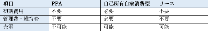 なお、自己所有自家消費型とリースでは「FIT制度(固定価格買取制度)」により、余った電気を電力会社に売ることが可能です。一方、PPAモデルで発電した電気は事業者の所有物のため、需要家が勝手に売ることはできません。