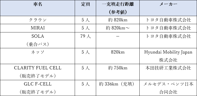 これまでに様々な自動車メーカーがFCVを開発してきました。以下は、代表的なFCVの車名一覧です。