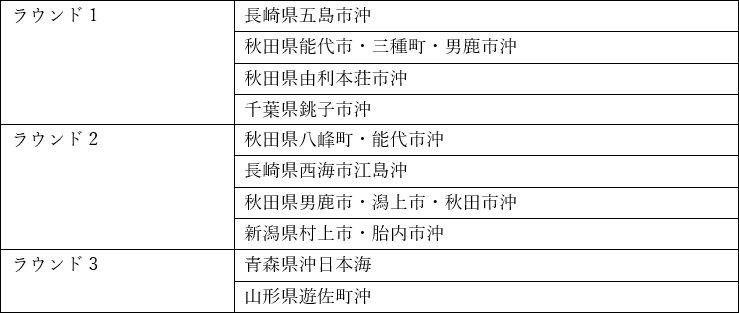 2023年12月および2024年3月にはラウンド2の入札結果が発表され、秋田県男鹿市・潟上市・秋田市沖は株式会社JERAや電源開発株式会社など4社が構成するコンソーシアム、新潟県村上市・胎内市沖は三井物産株式会社や大阪ガス株式会社など3社が構成するコンソーシアムが落札しました。
