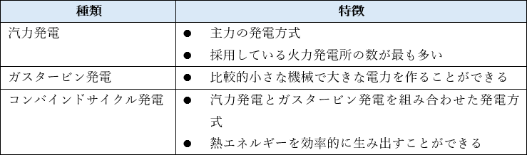 火力発電は、電気を生み出す仕組みの違いによって主に3つの種類に分けられます。