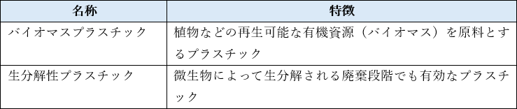 バイオプラスチックは、バイオマスプラスチック・生分解性プラスチックの両方をさし、環境に配慮したプラスチックとして導入の促進が期待されています。