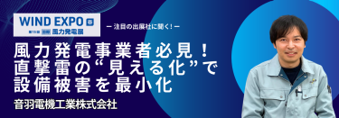 同社は、雷対策技術の進化を通じて、再生可能エネルギーの安定供給と持続可能な社会の実現に寄与している。担当者は「展示会では直撃雷検出装置の実物展示やデモンストレーションを通じて、製品の優位性と同社の技術力を紹介したい」と話す。(文:落合平八郎広報事務所)