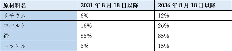 当初、リチウムの再資源化率は2026年1月1日までに35%、2030年1月1日までに70%の案が示されていましたが、欧州議会の要請により大幅に引き上げられています。