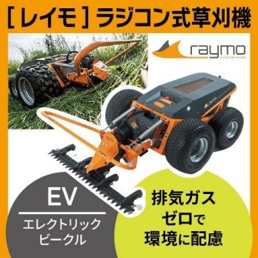 EVで環境に配慮した低騒音のラジコン草刈機です。 四輪駆動で力強く走行。 超低車高で安定した重量バランスにより急斜面に対応しています。 また電動力で実現した静粛性能が、作業時の騒音を抑えます。 レイモはベルト、油圧装置、エンジンオイル、エアフィルターがなく、メンテナンス箇所が少ないため故障リスクが軽減されます。 草を細かく粉砕するロータリー式、飛び石の心配がないバリカン式といった、現場に合わせて選ぶ豊富なフロントモアデッキをご用意しております。 【特長】 ■EVのため排気ガスゼロで環境に配慮 ■安心安全なリモコン操縦 ■1回の充電にかかる費用は118円 ※電気料金25円/kWhで計算 ■選べるオプションデッキ(4種類) ■車高51cmの低車高 ■安定した重量バランス ■急斜面対応