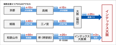 会期中、JR大阪駅より会場まで、直行バスが運行しています。ぜひご利用ください。