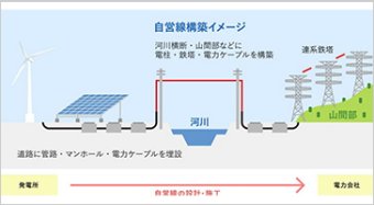 説明:自営線とは、太陽光をはじめとした再生可能エネルギーの発電所から電力連系点までを結ぶ送電ルートです。